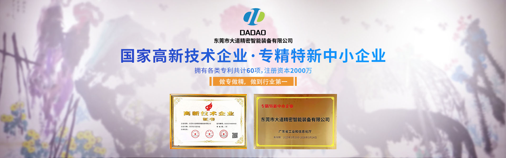 大道精密成立于2019年,公司注冊(cè)資本1000萬(wàn)元,擁有辦公室、廠房等18,000多平方米。已通過ISO9001:2015國(guó)際質(zhì)量管理體系認(rèn)證,擁有國(guó)家各類專利共計(jì)58項(xiàng),獲得“中國(guó)大道.商標(biāo)”和“一帶一路十周年 .國(guó)禮品牌”等榮譽(yù)稱號(hào),屬于國(guó)家高新技術(shù)企業(yè)。2023年4月成立了“東莞市大道精密智能裝備有限公司關(guān)心下一代工作委員會(huì)”,是東莞市企石鎮(zhèn)工商聯(lián)副會(huì)長(zhǎng)單位、東莞市企石鎮(zhèn)文學(xué)藝術(shù)界聯(lián)合會(huì)副主席單位、東莞市環(huán)保包裝行業(yè)協(xié)會(huì)副會(huì)長(zhǎng)單位、東莞市數(shù)控裝備行業(yè)協(xié)會(huì)第二屆會(huì)長(zhǎng)單位、廣東省包裝技術(shù)協(xié)會(huì)常務(wù)理事單位、廣東省膠粘劑行業(yè)協(xié)會(huì)理事單位。