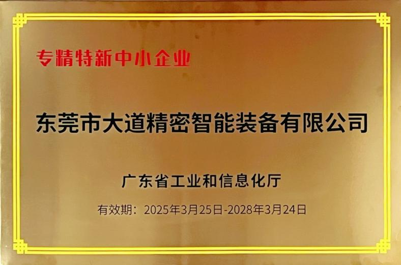 2024年12月19日,大道精密已被評定為廣東省“專精特新”中小企業(yè)。該資質(zhì)認(rèn)定聚焦于具備“專業(yè)化、精細(xì)化、特色化、新穎化”特征的中小企業(yè),是對企業(yè)在細(xì)分市場技術(shù)優(yōu)勢、創(chuàng)新能力及發(fā)展?jié)摿Φ臋?quán)威背書。大道精密長期深耕精密智能裝備研發(fā),在自動化控制、安全防護系統(tǒng)集成等領(lǐng)域形成多項核心技術(shù),產(chǎn)品廣泛應(yīng)用于新能源、汽車制造、精密電子等行業(yè),以高可靠性和智能化水平贏得市場口碑。