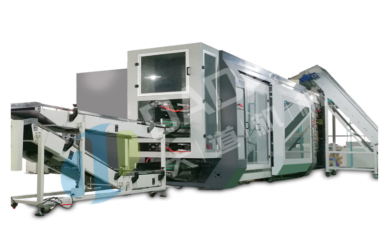 350m/min、左右開(kāi)門式消音罩、液壓導(dǎo)軌式無(wú)軸上料、原料電動(dòng)左右移位、不停機(jī)自動(dòng)貼標(biāo)、伺服微張力控